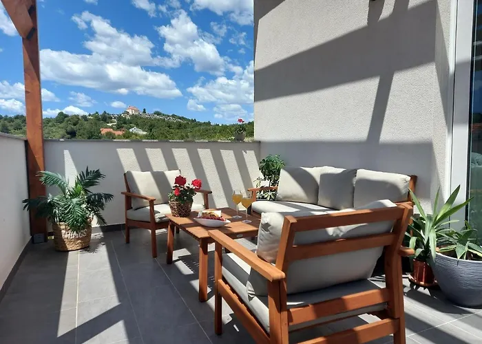 Sie genießt eine ruhige Lage in ungefähr 10 Gehminuten Entfernung vom Zentrum von Šibenik. 550 Meter von der Unterkunft liegen Konoba Tratinska und Anima Mare, in denen die Gäste speisen können.